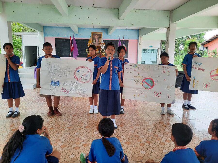 วันศุกร์ที่ ๓๑ พฤษภาคม ๒๕๖๗ นายพิจักษณ์ภพ พงศ์วิเศษ ผู้อำนวยการโรงเรียนบ้านหนองดินดำ พร้อมคณะครู นักเรียน จัดกิจกรรมวันงดสูบบุหรี่โลก ประจำปี ๒๕๖๗ ภายใต้คำขวัญ ?ร่วมปกป้องเด็กและเยาวชนจากบุหรี่ไฟฟ้า? โดยให้ความรู้เกี่ยวกับวันงดสูบบุหรี่โลกแก่นักเรียน เพื่อสร้างภูมิคุ้มกันการรู้เท่าทันโทษและพิษภัยของบุหรี่ไฟฟ้า S:0