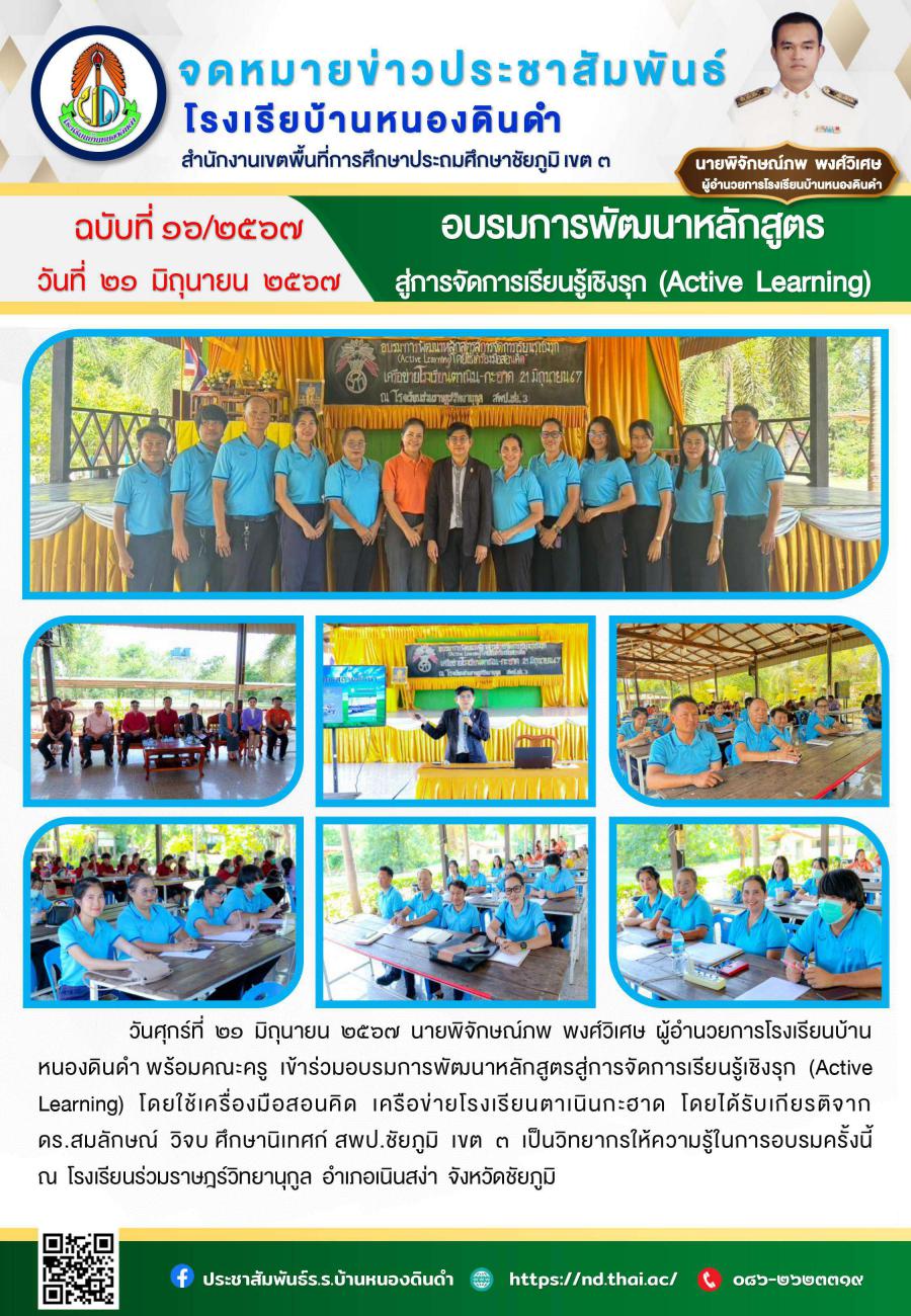อบรมการพัฒนาหลักสูตรสู่การจัดการเรียนรู้เชิงรุก (Active Learning)